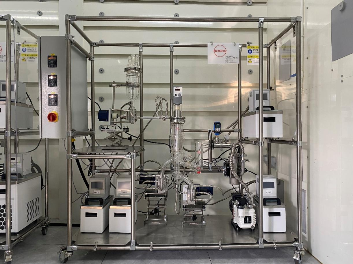 BOSCOO BOG系列短程\分子蒸馏设备主体采用高硼硅玻璃制作,可视化设计,能够观察实验过程中的每一个细节,为保证成膜的均匀性,蒸发器内壁采用德国进口原坯材料,所配套的真空及加热系统可选进口或者国产品牌,配置多元化,用户可根据具体需求选择。进出料还可以配置齿轮泵,能够将物料从负压连续不断地输送到常压,可以实现连续不停机运行。